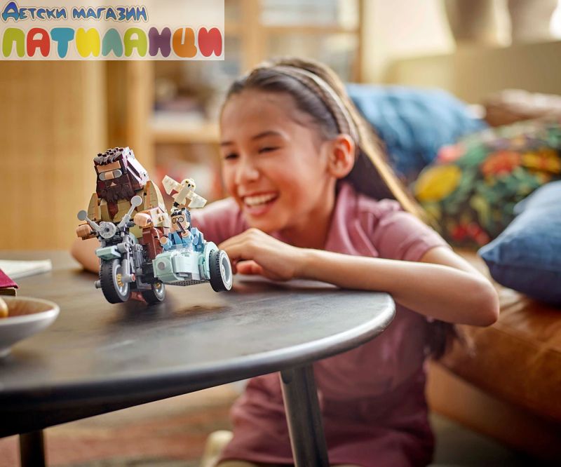 Магьоснически подарък за фенове на фентъзи комплектите LEGO® – дайте на децата забавно предизвикателство да уловят външния вид на любимия герой Хагрид, който се вози на емблематичния си син мотор с Хари Потър в коша;