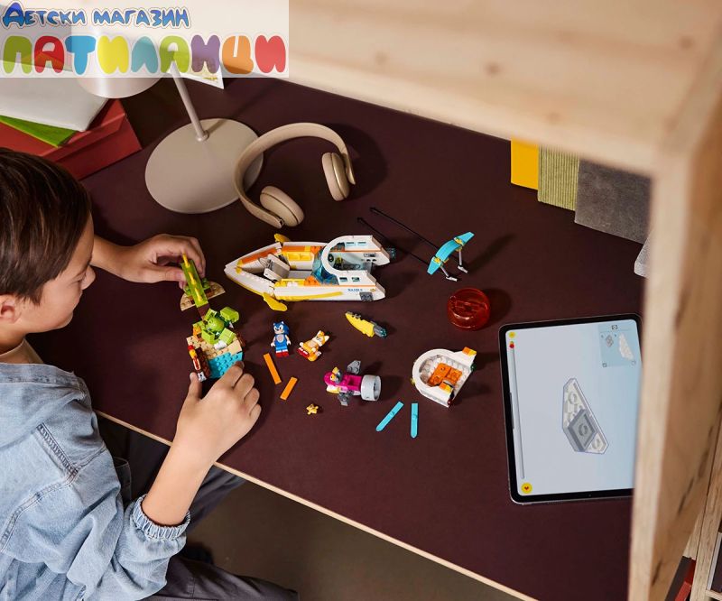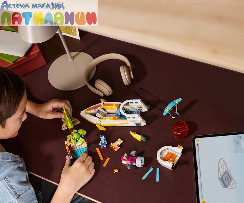 Зарадвайте малките любители на приключения и феновете на видеоигрите на възраст 8+ години със забавен подарък за геймъри със строителния комплект „Приключенската лодка на Тейлс“ (76997) за деца, с множество функции и интерактивни опции за игра. Този колекционерски комплект LEGO® Sonic the Hedgehog™ включва лодка с вграден катапулт за сфера за скорост, караоке машина и дансинг, плюс конектори за парасейлинг в задната част. Забавни опции за ролеви игри с 4 героя, модел на остров с 3 Пръстена, арка, плажен стол и други аксесоари. Тази готина играчка със Соник позволява на феновете на Blue Blur да създават безкрайни истории със Соник и Тейлс: от парти на лодката с танци, караоке, водни ски и парасейлинг, до почивка на острова, след победата над Jawz и спасяването на Tocky. Бързият екшън се среща с въображаемата игра в играчките LEGO Sonic the Hedgehog. Децата се наслаждават и на лесно и интуитивно строително приключение с приложението LEGO Builder, в което могат да мащабират и завъртат 3D моделите, да запазват комплекти и да проследяват напредъка си.