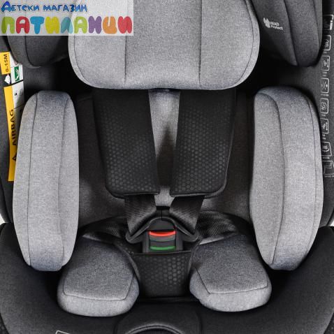 - Регулируем 5-точков колан за безопасност с меки протектори и индикатор за закопчаване.
