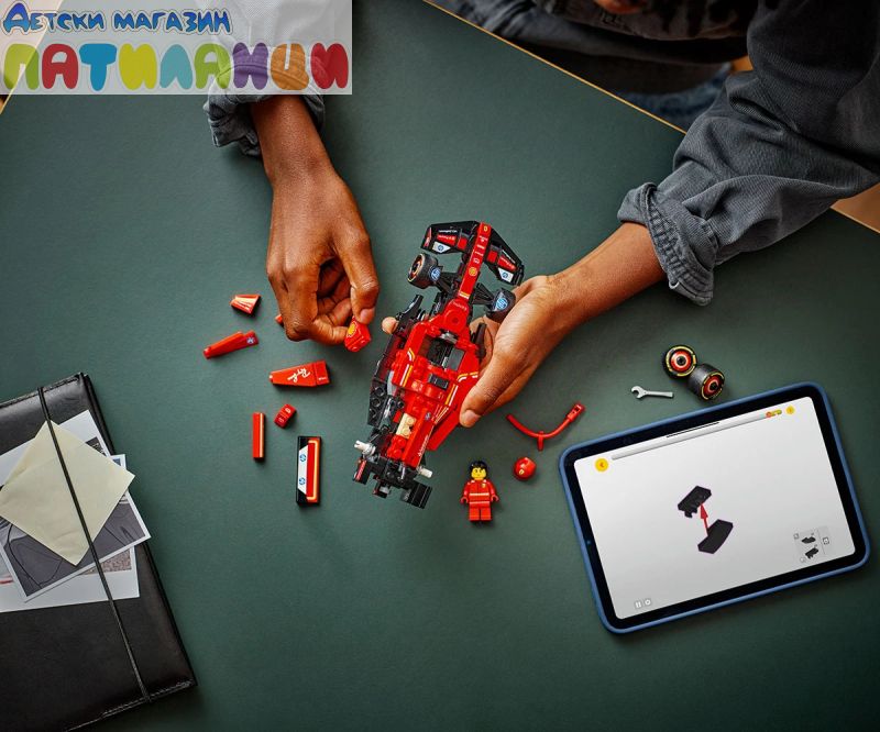 Играчката Ferrari F1® за деца – момчето и момичето на възраст над 10 години и феновете на Ferrari могат да конструират, да показват и да се състезават с комплекта LEGO® Speed Champions F1 Ferrari SF-24 F1 и пилот;