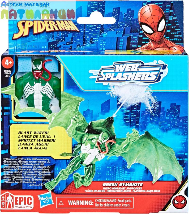 Фигурка Green Symbiote Превозно средство изстрелващо паяжина, Spider-Man Hydro Jet Blast