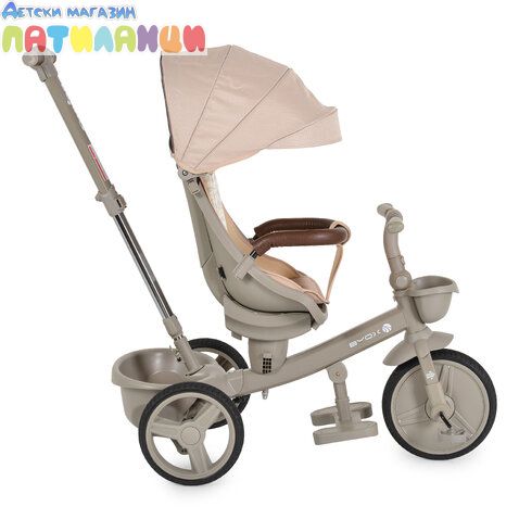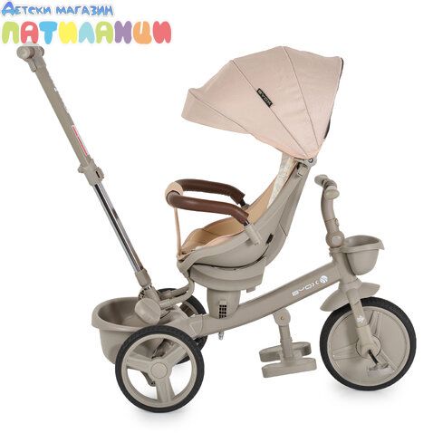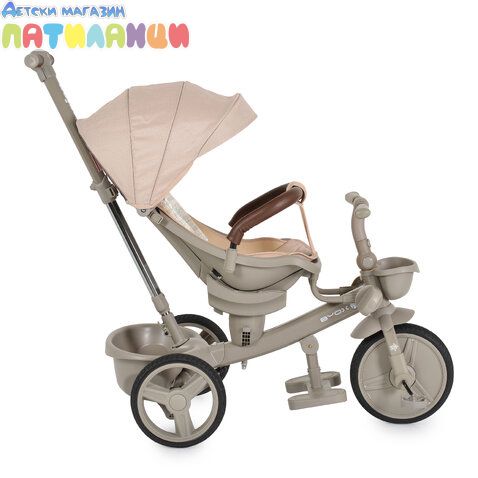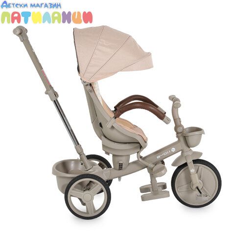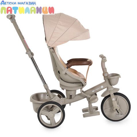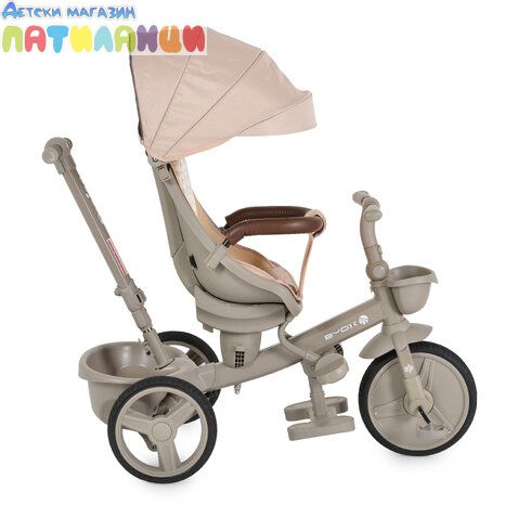 Предно колело с функция за фиксиране на педалите - колелото се движи свободно, а педалите са в едно положение и не могат да контролират колелото. Регулируема дръжка за родителски контрол, контролираща посоката на движение на предното колело.