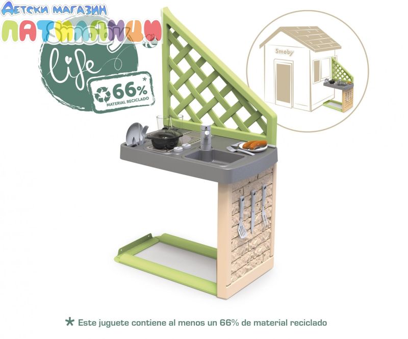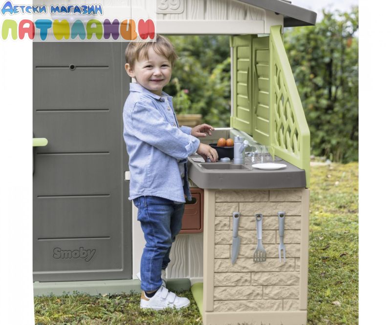 Лятна кухня, адаптирана към къщичките Smoby, които са съвместими* (*моля, вижте таблицата за съвместимост).