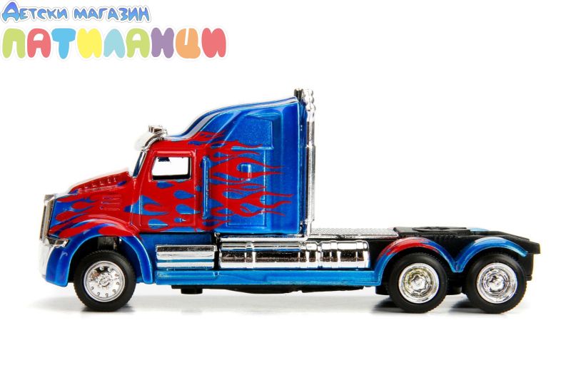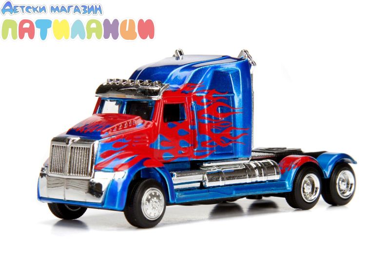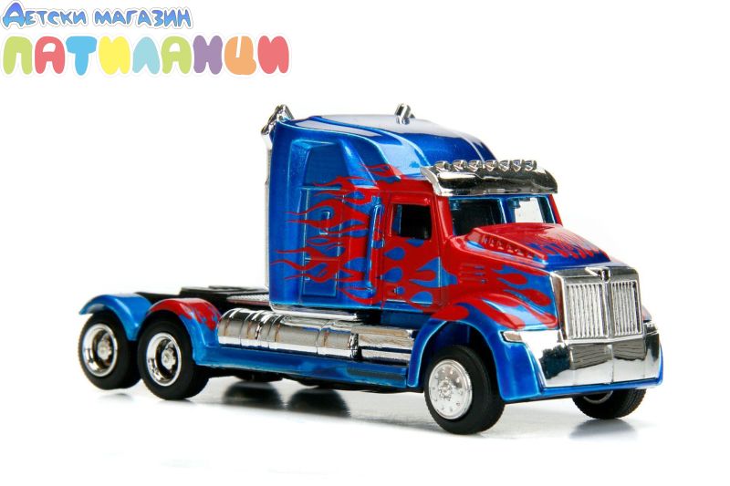 Лицензирани превозни средства от Transformers Оптимус Прайм от Jada са вече при вас! Превозните средства са изработени от метал (Die-Cast) и са с въртящи се колела и напълно детайлни. В резултат 1:64.