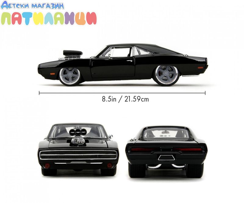 Впечатляващи детайли, функция за свободен ход и отварящи се врати, преден капак и багажник правят черния Dodge Charger от 1970 г. в мащаб 1:24 популярен подарък за всички фенове на Бързи и яростни и деца на 8 и повече години. Висококачественият метален корпус с черна боя не само осигурява здрава конструкция, но и придава на модела вечен външен вид, който перфектно улавя атмосферата от Бързи и яростни!