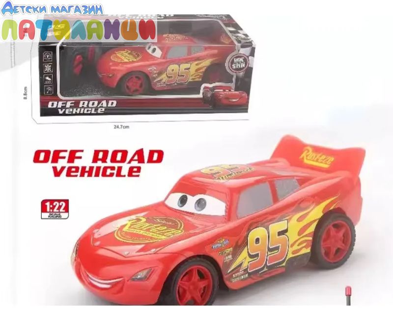 Колата с дистанционно управление, вдъхновена от Cars Lightning McQueen, емблематичният герой от филма Pixar Cars, пристигна. Идеален артикул за колекционери, фенове на франчайза и деца, които обичат приключенията и скоростта.