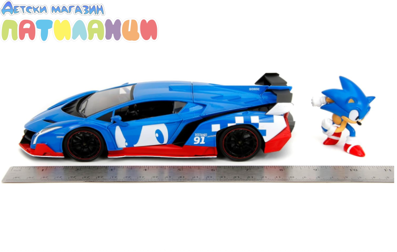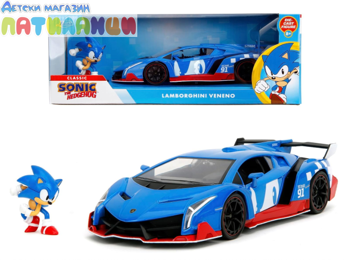 Метален автомобил Lamborghini Veneno с фигурка Sonic The Hedgehog 1:24 Jada 253255082