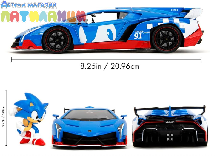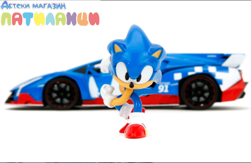 Метален автомобил Lamborghini Veneno с фигурка Соник