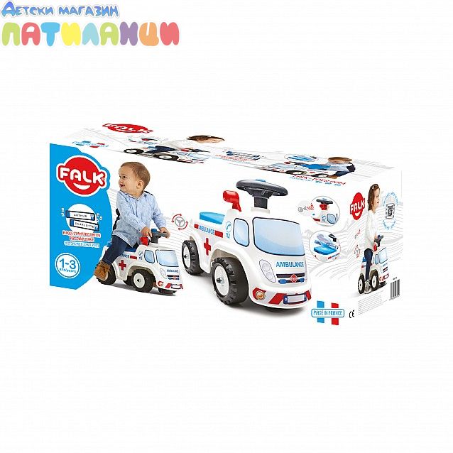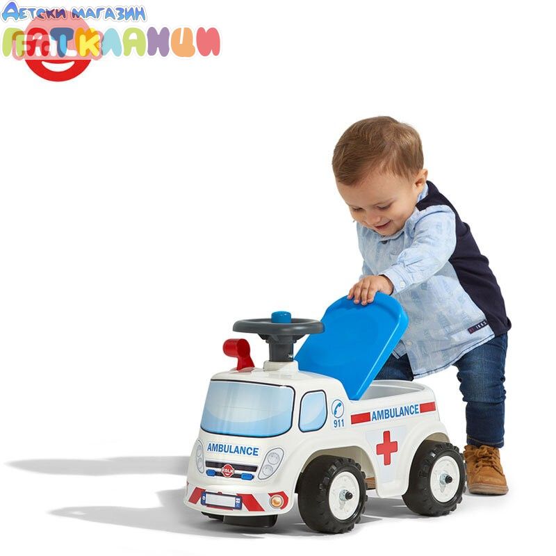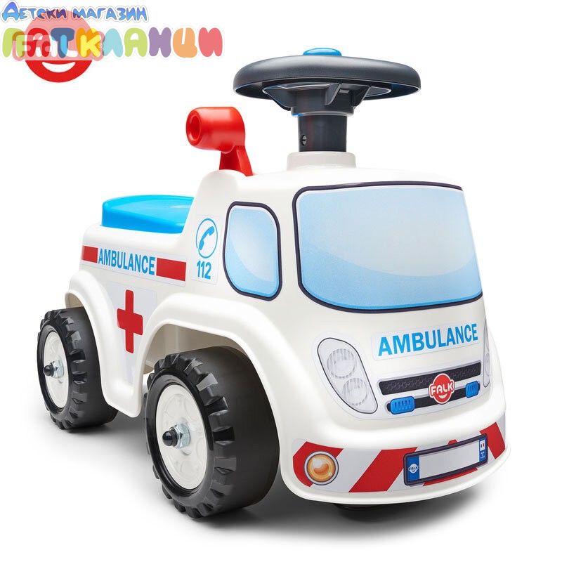 Забавен камион линейка с отваряща се седалка и тромба на волана.