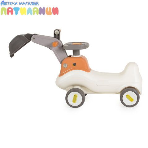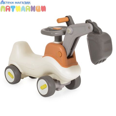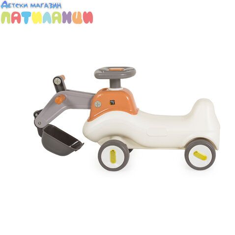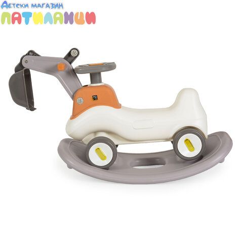 С подвижно гребло и реалистичен дизайн, играчката лесно се трансформира от багер в кола – просто демонтирайте греблото и поставете включената оранжева тапа. За още по-забавно изживяване, монтирайте основата за люлеене с помощта на включените фиксатори. Уверете се, че основата е добре закрепена преди употреба!