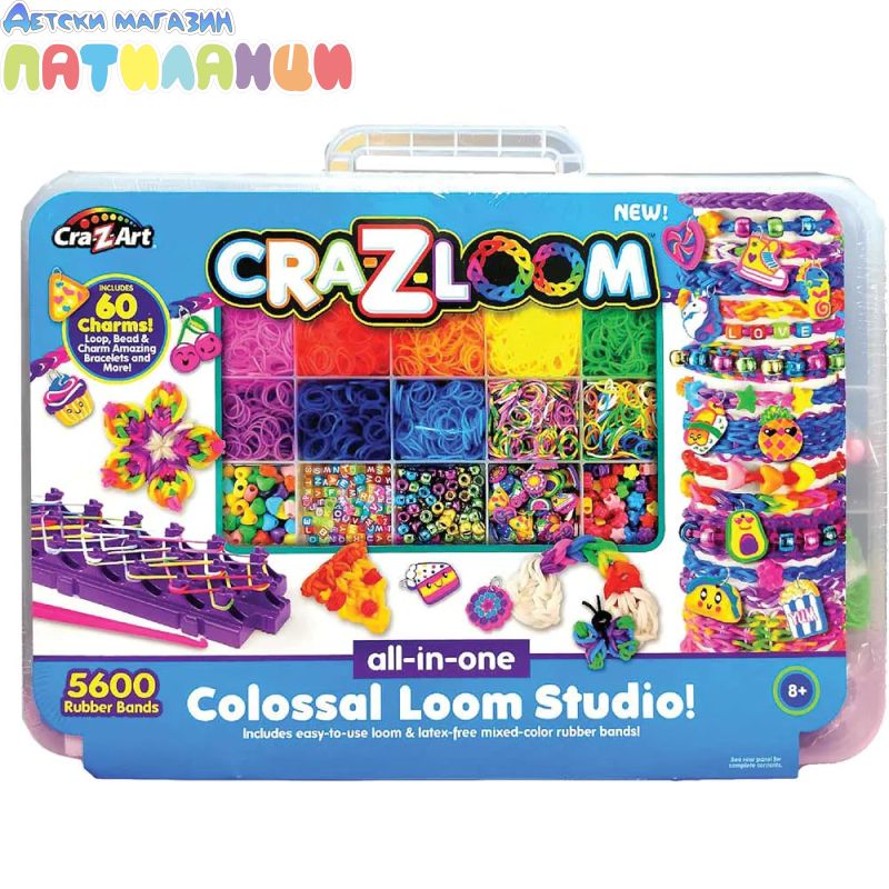 Комплектът включва: кутия, станче за плетене, инструмент, игла, 5600 цветни ластичета, 300 мъниста, 60 талисмана, 20 халкички, 100 свързващи кукички.