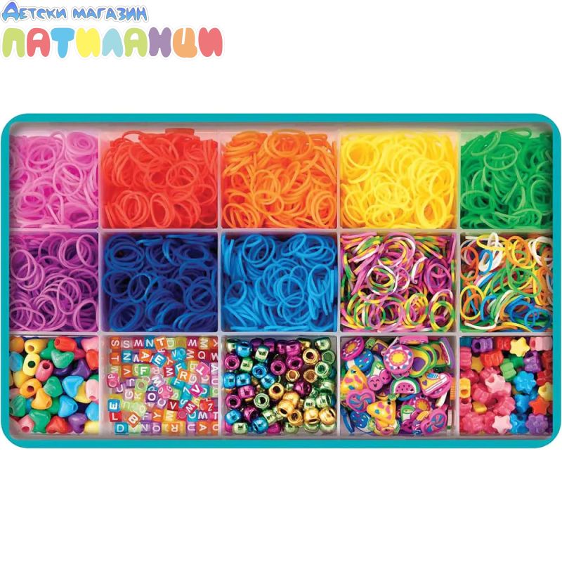В кутията - органайзер ще намериш всичко необходимо за изработка на гривни от цветни ластичета. Научи се да плетеш невероятни творения - направи подарък на приятел!