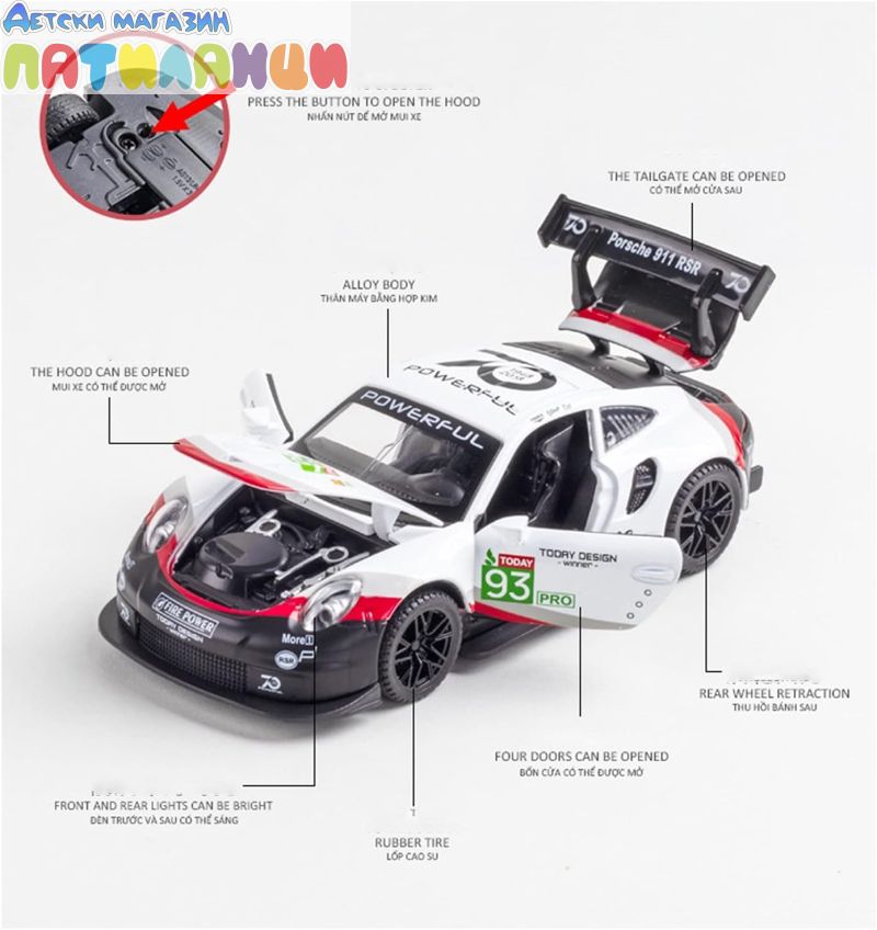 Метална кола Porsche 911 GT3 RS 1/32 бял