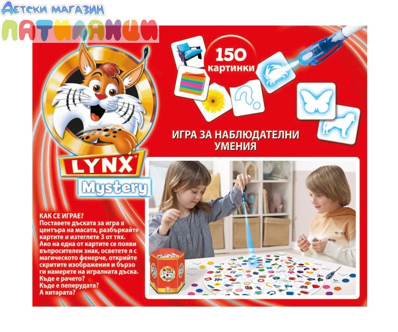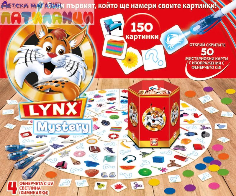 В Мистериозният Линкс не всички изображения могат лесно да се видят. Някои от картинките са мистериозни, защото са отпечатани с невидимо мастило, което може да се види само с помощта на UV фенерче. Готови ли сте да търсите скритите картинки по цялата дъска?