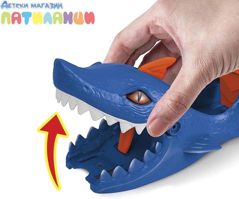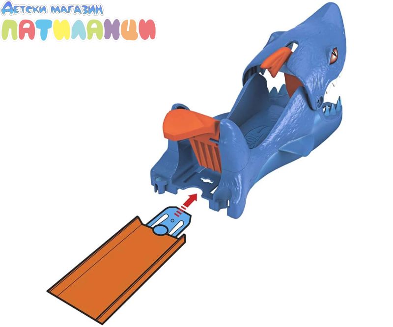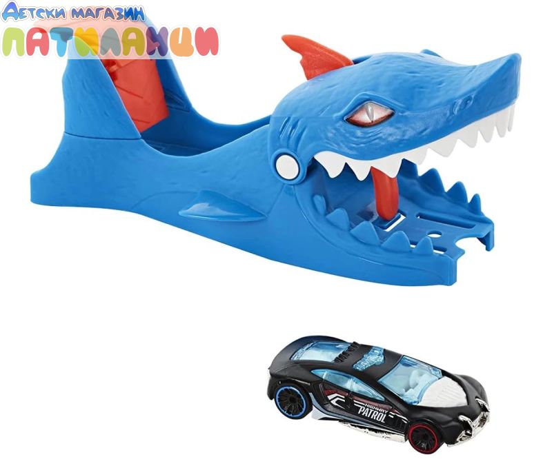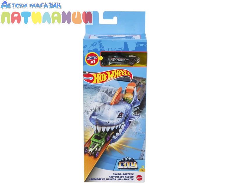 Hot Wheels City изстрелвачка с количка включва две любими на децата врагове – T-rex и акула – като супер готини изстрелващи устройства за коли (продава се отделно). Както Hot Wheels Dino Launcher, така и Hot Wheels Shark Launcher рискът включва страхотни предизвикателства, при които децата трябва да изстрелят коли с правилната сила или да останат в челюстите на враговете. Комплектът за игра Hot Wheels® Shark Launcher предлага вълнуващо предизвикателство към победния изстрелвач Nemesis. Децата удрят лост, който изпраща превозни средства, които се движат с висока скорост, на пистата, но ако не го ударят точно, челюстите се отварят и улавят колата в капана. Стартерът Hot Wheels® Shark е пълен комплект за игра, който включва един кола Hot Wheels® в машина 1:64. Може да се свърже и с други комплекти Hot Wheels™ City (продава се отделно) чрез две точки за свързване. Забавен подарък за деца от 4 до 8 години. Цветовете и декорациите могат да варират.