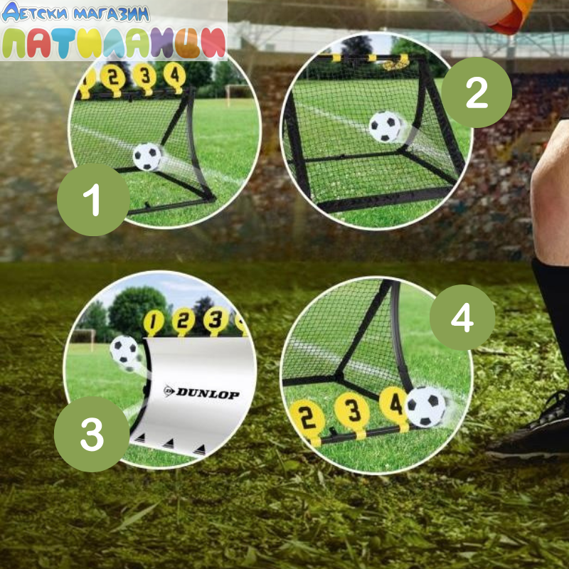 Тренирайте своите футболни умения с Dunlop тренировъчна врата 4в1.