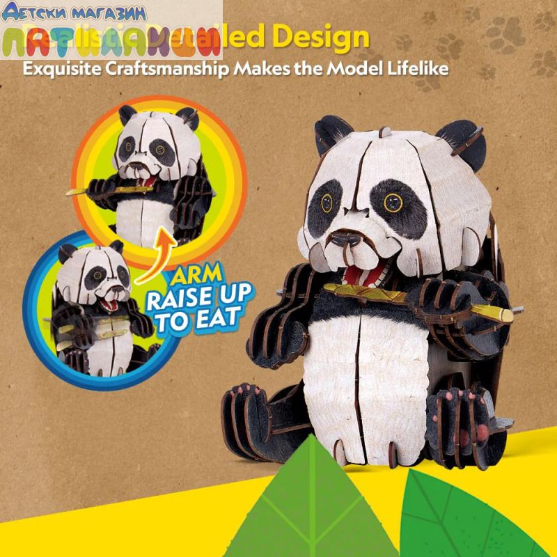 Голямата панда оживява в 3D форма. След като бъде сглобен, пъзелът разполага с подвижни елементи – ръцете на пандата се вдигат, сякаш за да "ядат" бамбук, добавяйки динамика и реализъм към експозицията.