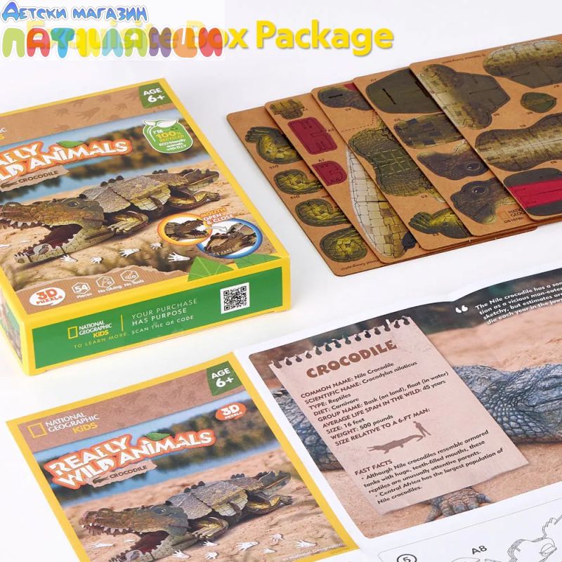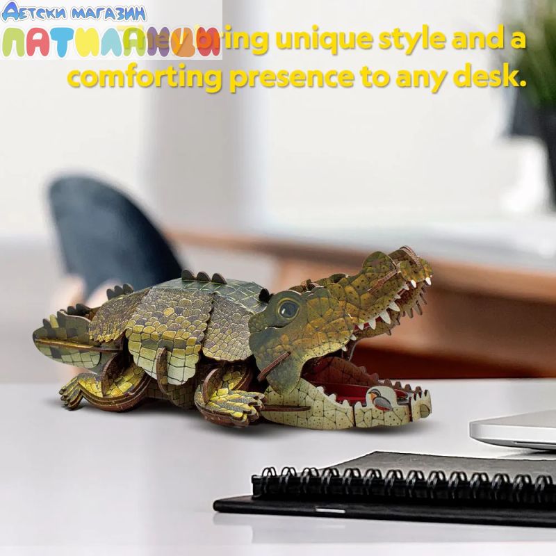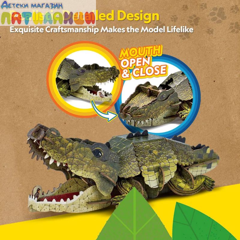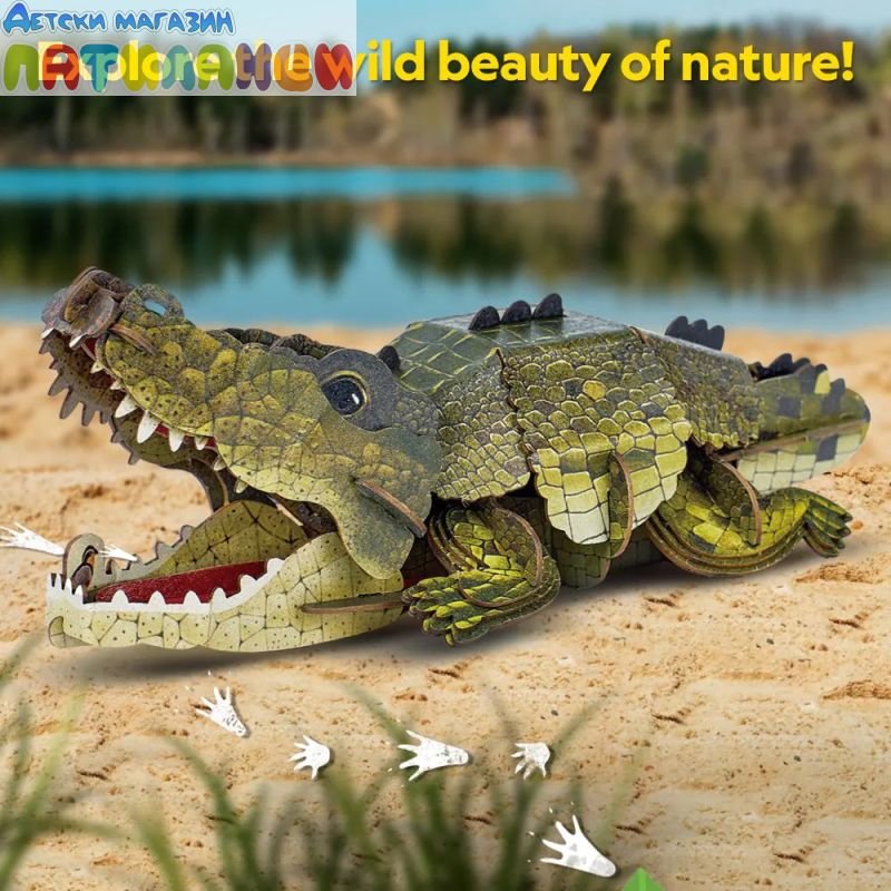 Крокодилът, символ на мощ и сила, оживява в 3D форма. След като бъде сглобен, пъзелът разполага с подвижни елементи – устата на крокодила се отваря и затваря, сякаш се готов да захапе, добавяйки динамика и реализъм към експозицията.
