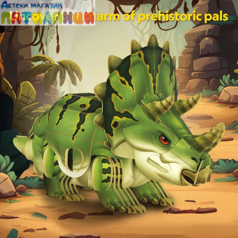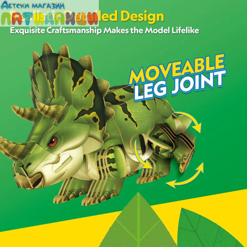 Трицератопсът оживява пред очите ти с подвижни елементи. След като пъзелът бъде сглобен, става възможно да движиш ставата на краката му, което придава допълнителна динамика и реалистичност на модела, позволявайки му да изглежда сякаш е в движение.
