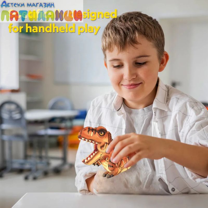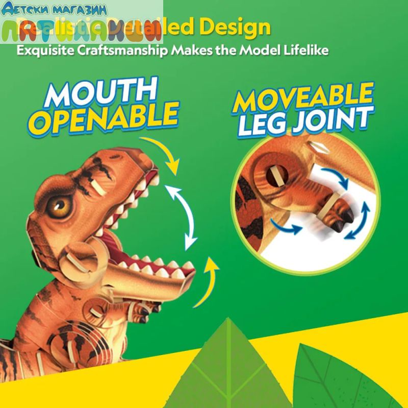 Тиранозавърът Рекс, символ на безпощадната сила и ловкост, оживява с подвижни елементи. След като пъзелът бъде сглобен, можеш да отвориш и затвориш устата на тиранозавъра, сякаш той е готов да атакува, добавяйки реалистичност и динамика към модела.