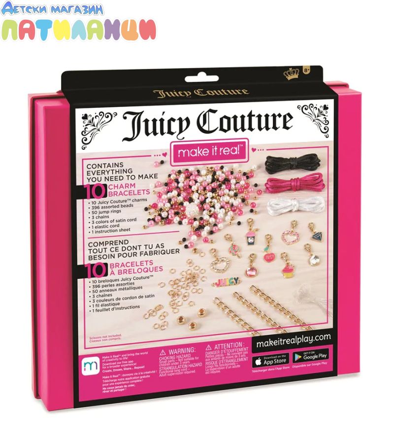 Комплектът съдържа: 10 талисмана, 396 цветни мъниста, 50 халкички, 3 верижки, 3 цветни шнурчета, корда.
