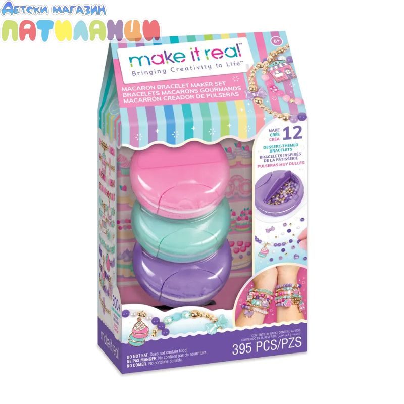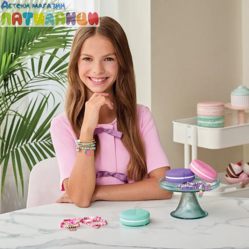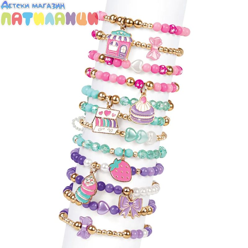 Творчески комплект за изработка на гривни с мъниста в кутийки с формата на сладкиши.