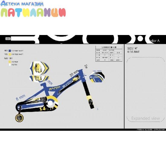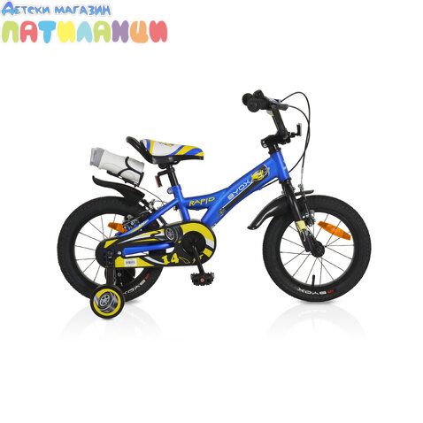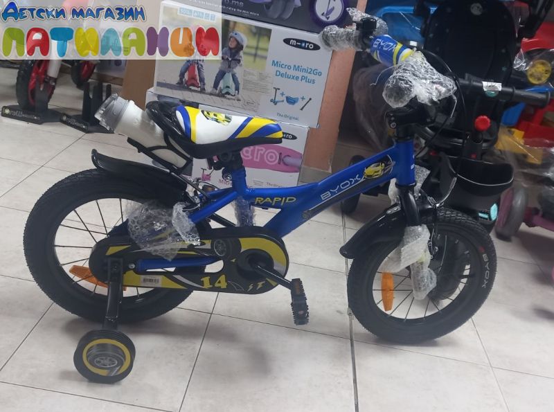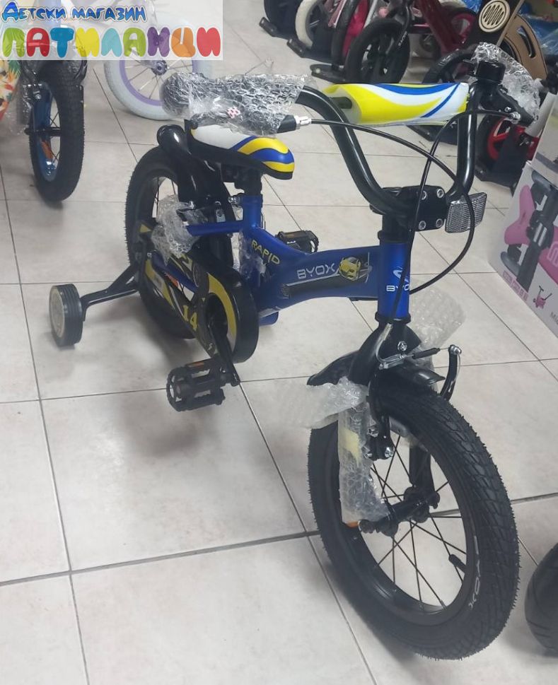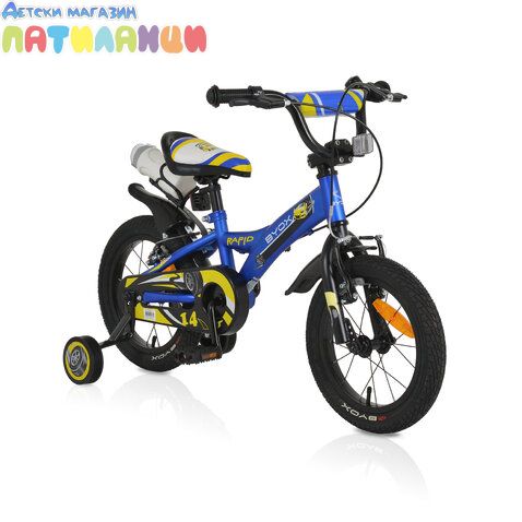 Детски велосипед 14‘‘ Rapid от Byox е перфектният избор за първите приключения на две колела. Със здрава конструкция, красив дизайн и удобни аксесоари, той гарантира комфорт и сигурност при всяко каране.