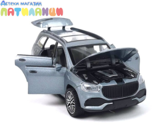 Метална кола Mercedes-Benz maybach GLS 600 със звук 1:28 сив