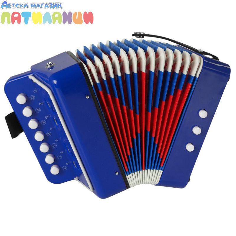 Пластмасов акордеон с 7 клавиша и 3 бутона.