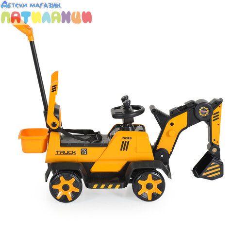 Със своята реалистична визия, здраво гребло за загребване, волан със звуци на клаксон и широка комфортна седалка, този багер не само забавлява, но и подпомага развитието на координацията и въображението.