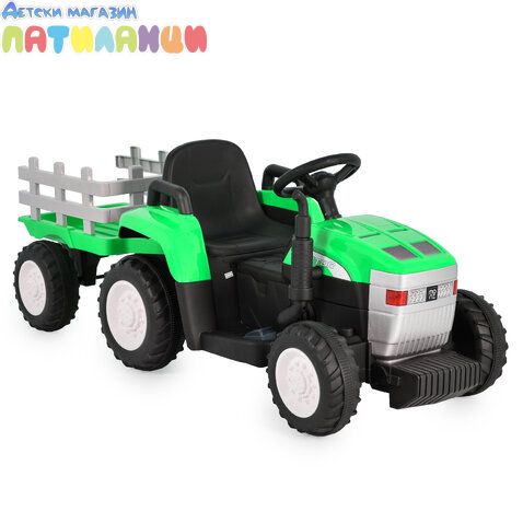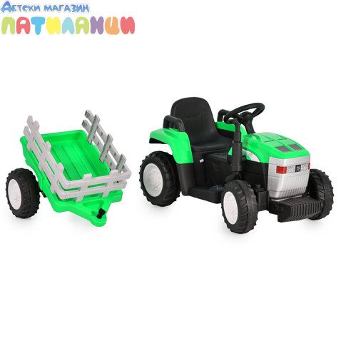 Детски акумулаторен трактор с ремaрке Dallas зелен