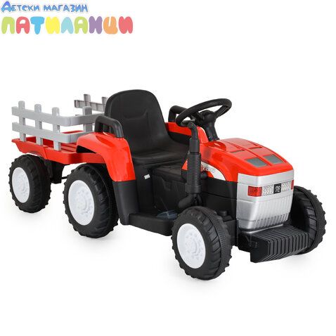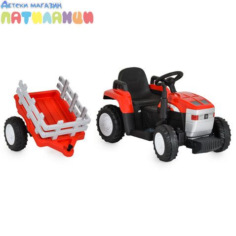 Детски акумулаторен трактор с ремaрке Dallas червен