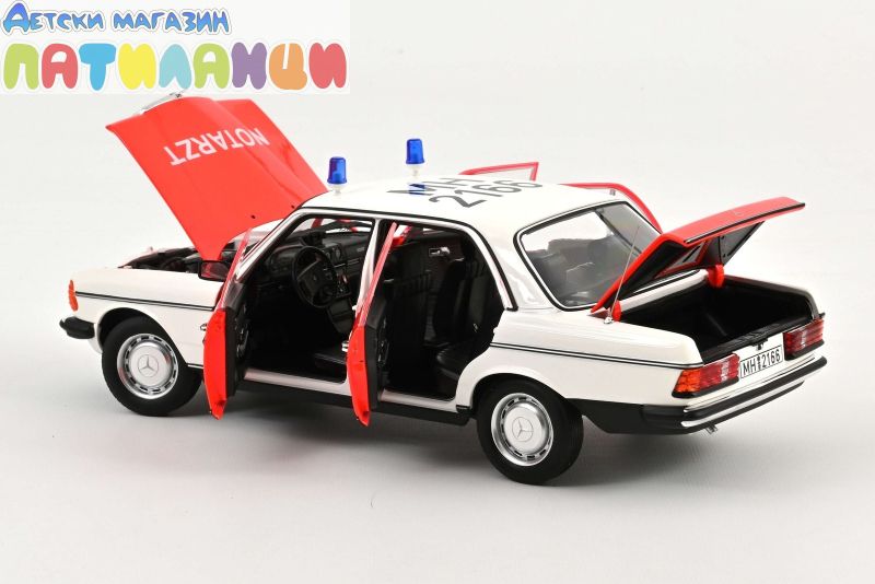 Колекционерски метален модел автомобил на Mercedes-Benz 200 1984 Emergency Ambulance Scala в мащаб 1:18 от Norev. Каталожен номер: 183834