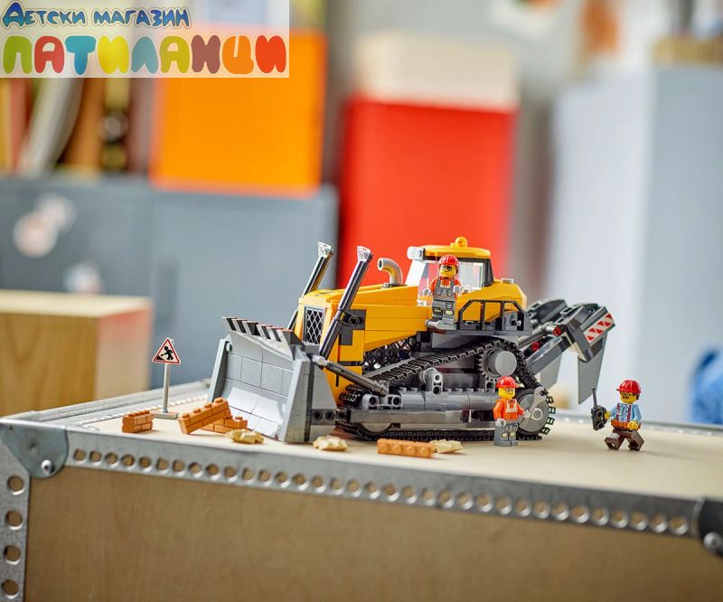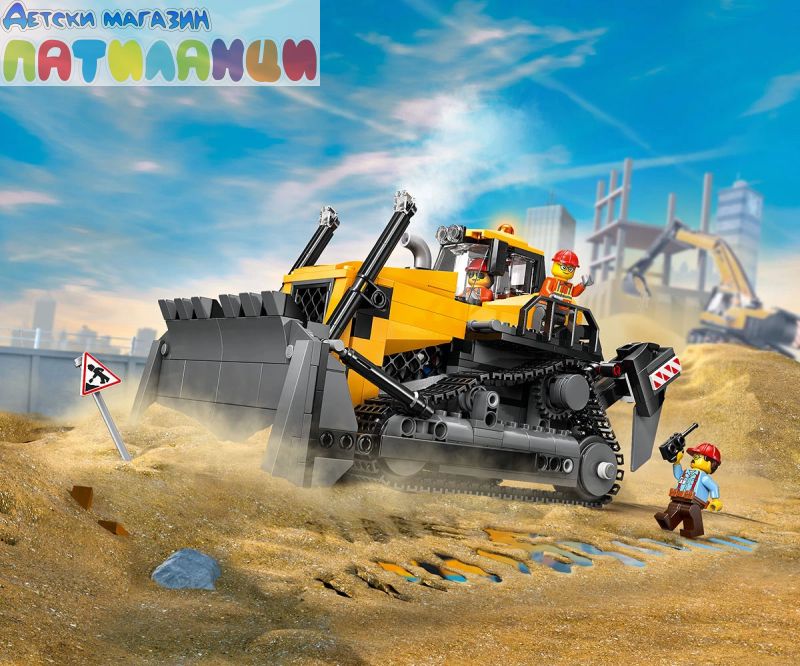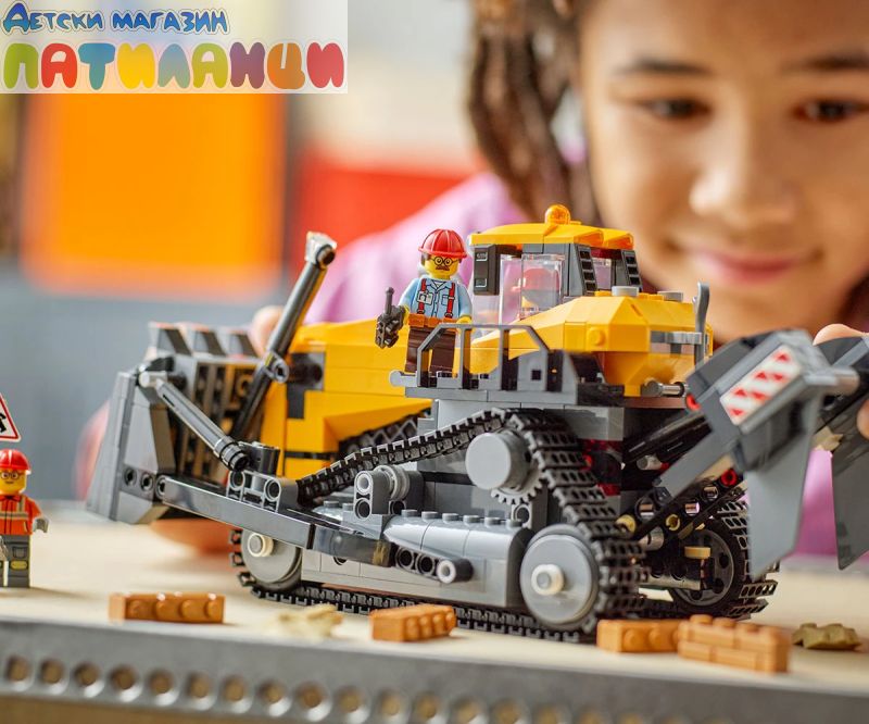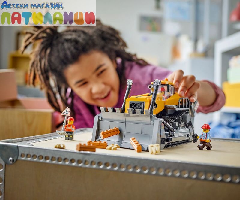 Приговете се за тежкотоварен ексшън с могъщия булдозер LEGO® City! Тази колосална машина има огромни вериги за справяне с неравен терен. Изобразете маркировката на строителен обект и вижте буталата на двигателя и вентилатора в действие, докато позиционирате машината. Разчистете тежките отломки с огромната лопата и разровете земята с мощния рипер. Времето е за сложно строителство!