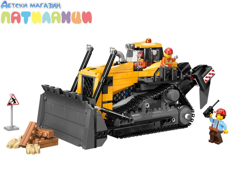 Какво има в кутията? – този комплект със строителна машина LEGO® City включва булдозер, плюс минифигури на шофьора и двама работници