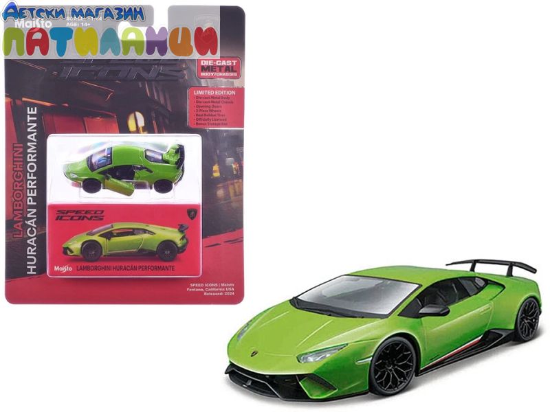 Метална кола Lamborghini Huracan Performante MAISTO 1:64 зелен