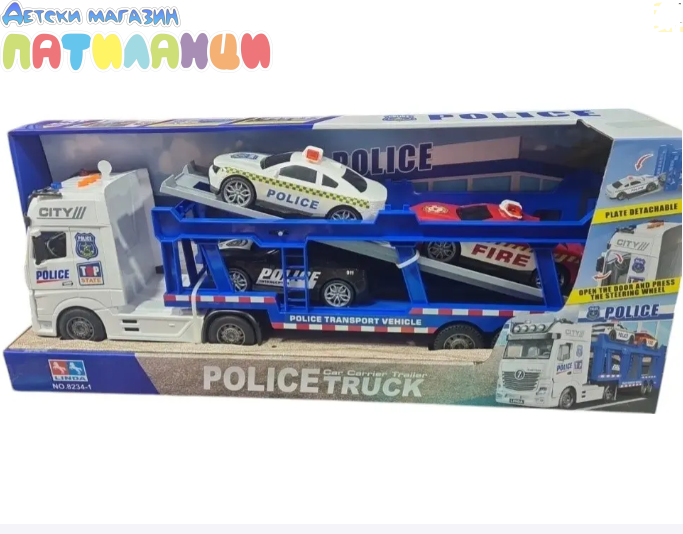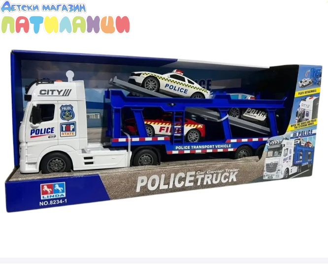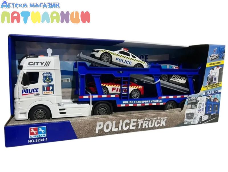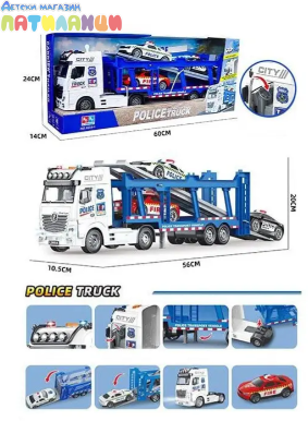 Мега камион автовоз, предназначен за транспортиране и съхранение на колички, включващ достатъчно пространство и отделения за организирана игра. Създавай вълнуващи състезания и епични автомобилни приключения.