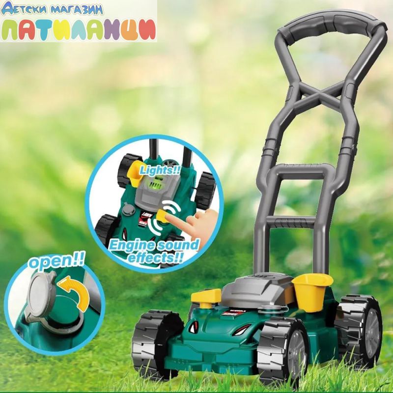 Детската косачка е страхотна играчка за забавление в парка или градина.