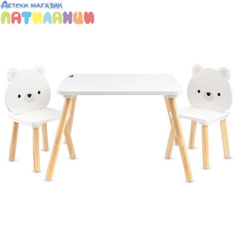 ? Дървена маса с 2 стола White Bears – уютен кът за малките патиланци!