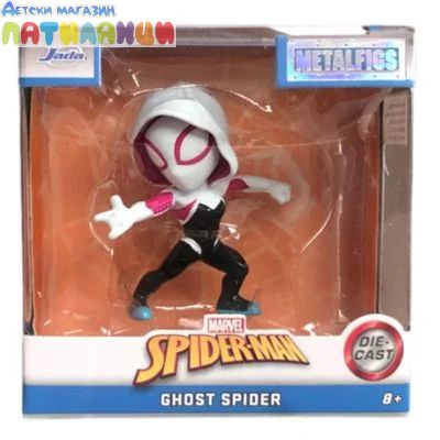 Представяме ви Ghost Spider (известна още като Spider-Gwen) – една от най-ярките звезди в Spider-Verse вселената! Съживена в тази невероятна метална фигурка от Jada Toys, тя е перфектна както за игра, така и за колекция. С уникалния си бял костюм с розови и черни акценти, Ghost Spider ще заеме заслужено място сред любимите супергерои на всяко дете (или възрастен фен)!