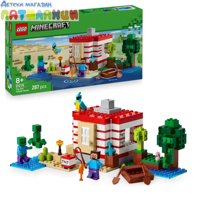 Конструктор LEGO Minecraft TNT къща в джунглата 21275