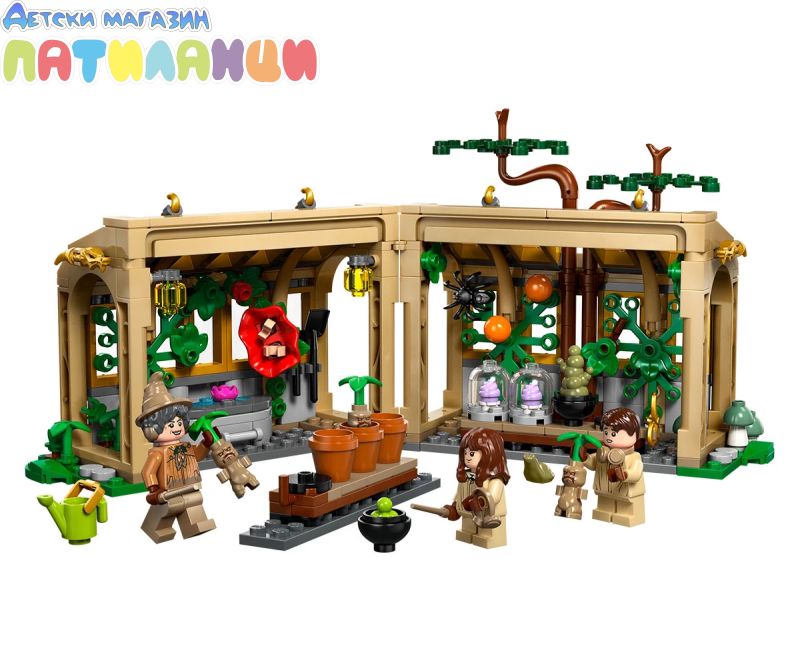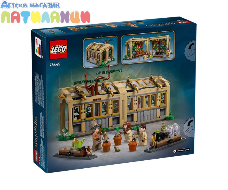 Пресъздайте часовете по магическа билкология в замъка Хогуортс с този комплект за игра с класна стая LEGO® Harry Potter™ (76445) за деца. Магически подарък за рожден ден за момичета, момчета и всички фенове на възраст над 8 години, играчката включва оранжерия/класна стая за построяване, която се отваря за лесна игра, и 2 подвижни маси. Намерете много вълшебни растения в оранжерията, включително 3 мандрагори LEGO Harry Potter, създадени специално за този комплект, които могат да бъдат извадени от саксиите им и държани от минифигурите. Включени са и различни градински аксесоари за игра на грижа. Комплектът включва 3 минифигури LEGO Harry Potter – Невил Лонгботъм, Хърмаяни Грейнджър и професор Спраут – плюс фигура на жабата Тревър, за да преживеете отново незабравими сцени и да създадете очарователни оригинални истории. Този комплект за фантастични приключения е част от колекция модулни играчки за построяване LEGO Harry Potter (продават се отделно), които заедно създават най-детайлната сцена на замъка Хогуортс от тухлички LEGO досега.