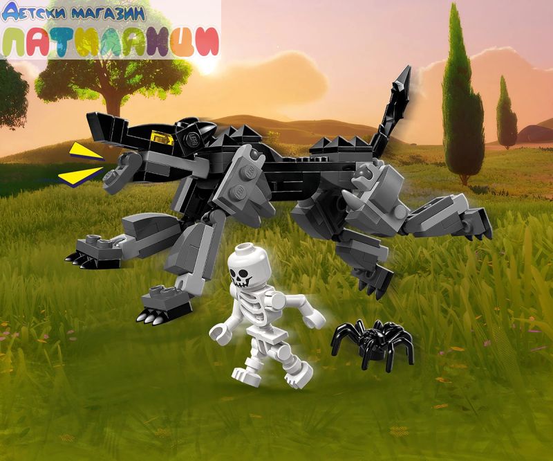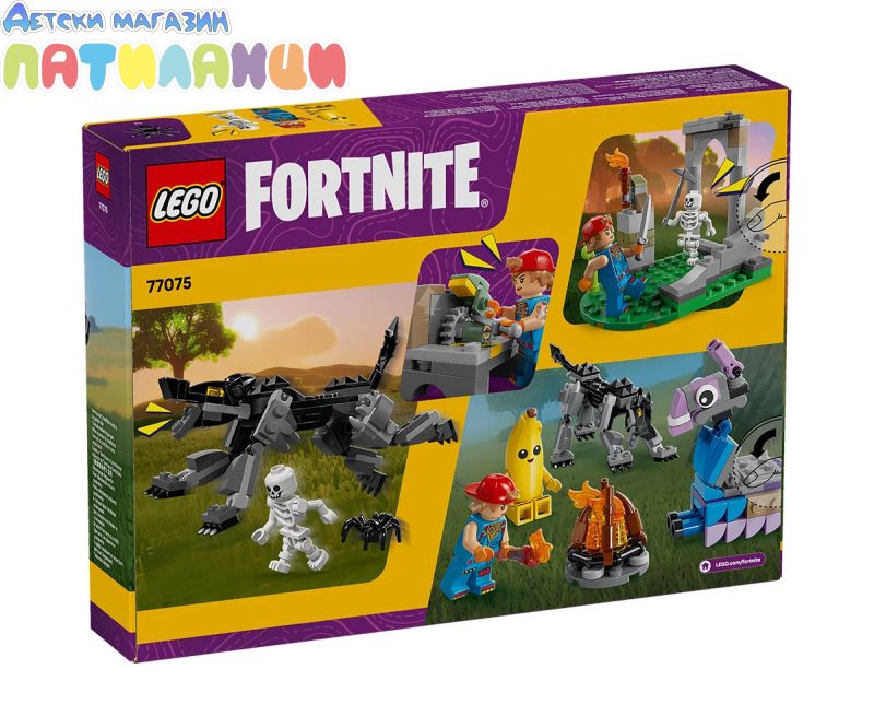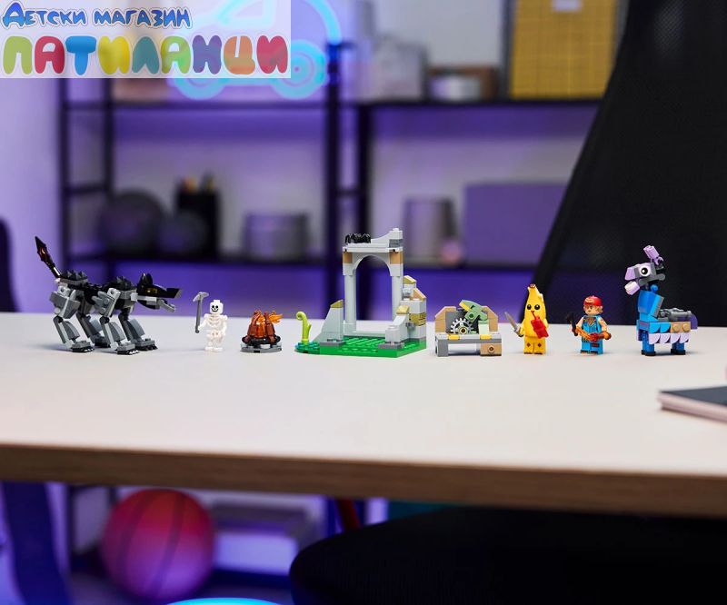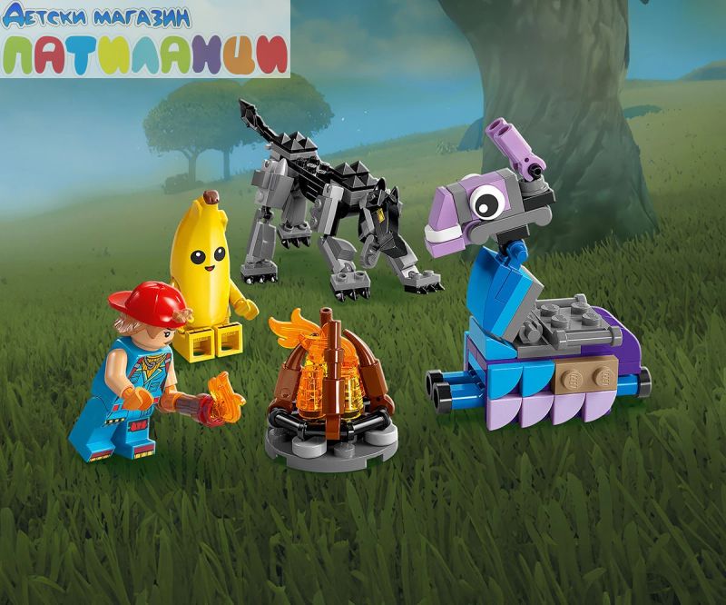 Фигури от видеоигри – Включва минифигури на Peely, Sparkplug и скелет, както и фигура на Supply Llama и фигура на вълк с подвижна опашка и крака, така че децата да могат да разиграват различни сцени;