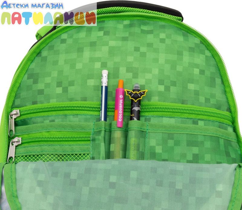 Подарете на вашето дете удобство и стил с тази страхотна ученическа раница с дизайн от популярната игра Minecraft! Подходяща за начален и прогимназиален етап, тя съчетава практичност, ергономия и любим геймърски стил.