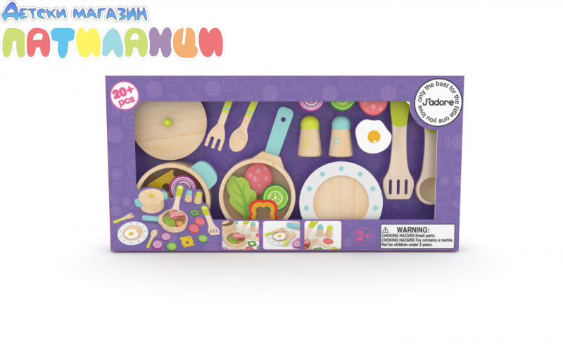 Готови ли сте за вкусни игри и много въображение? С този дървен готварски комплект от J'adore малките готвачи ще могат да приготвят "вкусни" ястия, докато развиват своите умения и креативност! ???