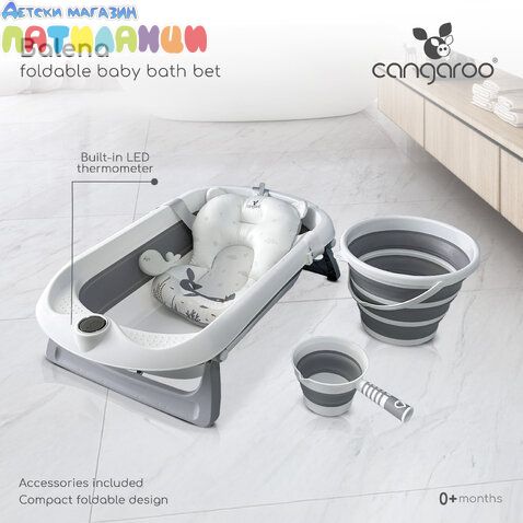 Сгъваем бебешки комплект за баня Balena, Cangaroo – стил, удобство и сигурност от първия ден!