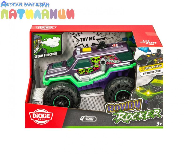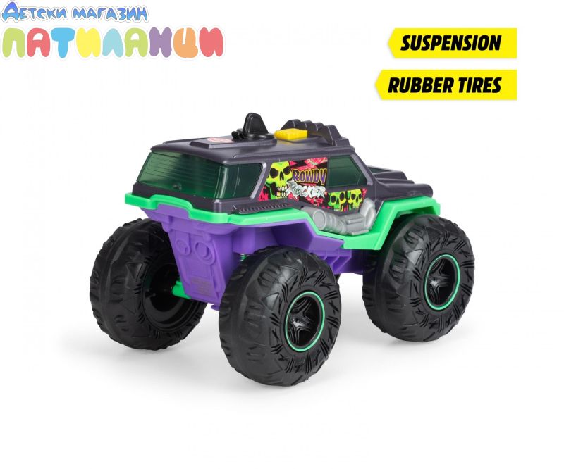 • Състезателен бунтар - 25-сантиметровият Rowdy Rocker оправдава името си: С огромни гумени гуми, окачване и свободен ход, монстър камионът се препуска през детската стая!