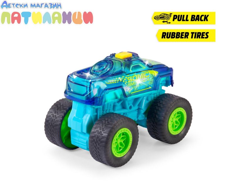 - Страхотно шоу с монстър камиони - С натискането на един бутон, 17-сантиметровата количка играчка "Sonic Smasher" се трансформира в подвижна сцена и изпълнява екшън спектакъл със светлинни и звукови ефекти.