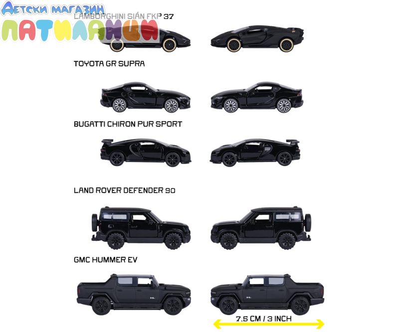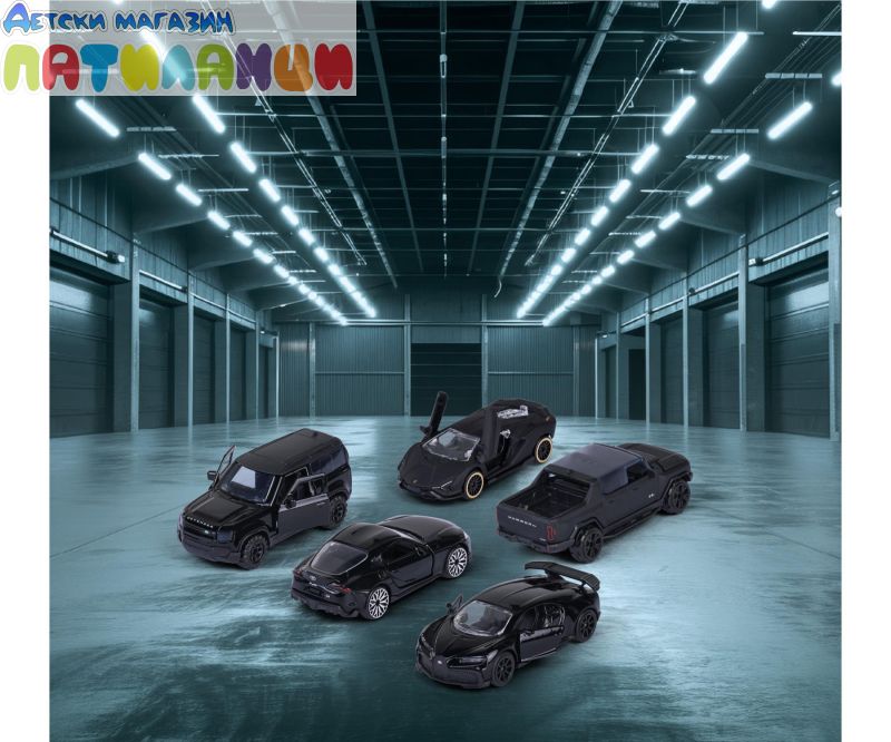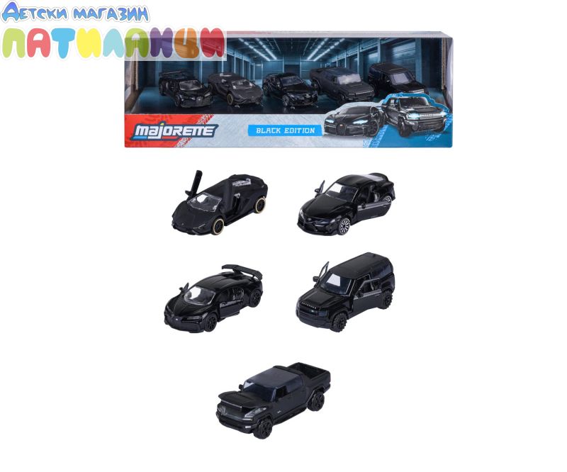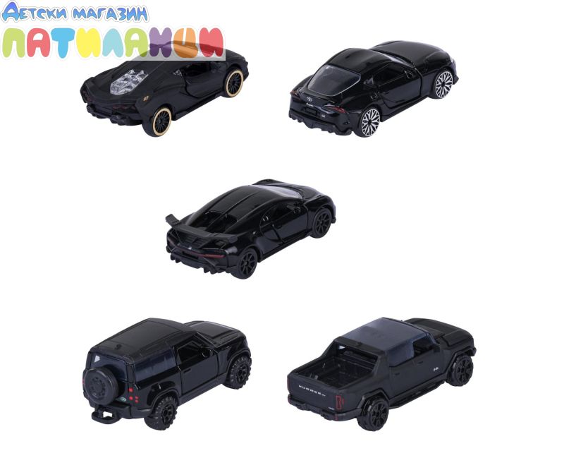 Комплект колички Black Edition(5 колички) - 5 изключителни метални модела колички със свободен ход и отварящи се части, колички играчки за колекционери и деца над 3 години, 7,5 см всяка