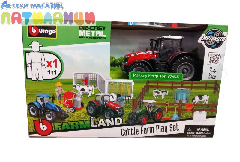 Комплект ферма с трактор Ферма за добитък Massey Ferguson 8740S Bburago